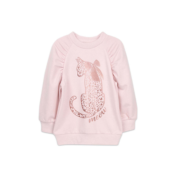 Демисезонный джемпер для девочки дошкольного и школьного возраста надежно защитит малышку от холода. Модель выполнена в нежном розовом цвете, с декором в виде складок на плечиках. В качестве акцента использован яркий принт: снежный барс, на спине которого расположен крупный бант того же цвета. Джемпер актуален весной, летом и осенью, когда на улице холодно и сыро. В основе ткани преобладают использованы хлопок и полиэстер, такая ткань хорошо пропускает воздух и дарит комфорт коже ребенка.