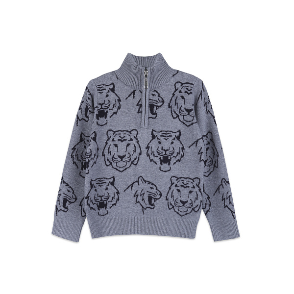 Стильный джемпер с высоким воротом и принтом в виде тигра, придется по душе мальчику дошкольного и школьного возраста. Благодаря нейтральному серому цвету модель чудесно подходит для повседневной носки. Чтобы добавить комфорт в прохладную погоду, предусмотрены удобные шнурки и облегающие манжеты по краю рукавов и в поясе. В основе ткани использованы вискоза и полиэстера с небольшим содержанием нейлона, что делает джемпер эластичным и мягким.
