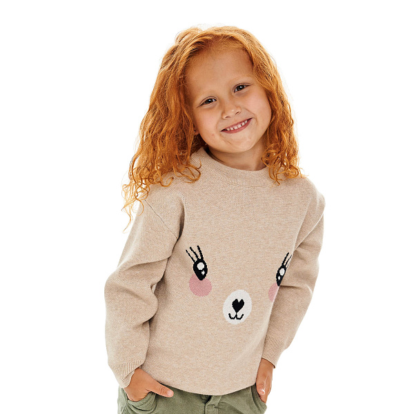 Теплый джемпер необходим любой девочке дошкольного возраста. Модель имеет свободный крой, не сковывает движения, комбинируется с любыми брюками и юбками.