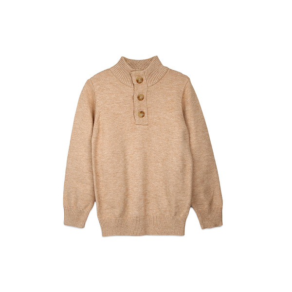 Модный джемпер пригодится для ребенка дошкольного возраста в весенне-осенний период. Он выполнен из мягкого, приятного на ощупь материала, в основе которого использованы вискоза, полиэстер и нейлон. Свободный фасон включает в себя наличие ворота-стойки, а также три пуговицы на груди. Благодаря этому ребенка легко переодевать, не причиняя дискомфорта. Нашивки в виде заплаток контрастного коричневого цвета расположены в локтевой части джемпера и добавляют в образ яркий акцент. Нейтральный бежевый цвет подойдет как для повседневной носки, так и для праздников.