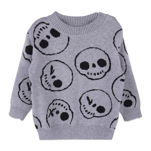 Этот оригинальный джемпер для мальчиков, выполненный в сером цвете, гарантированно привлечет внимание благодаря необычному дизайну с рисунками черепов. Изготовленный из качественных материалов, он включает 90% хлопка и 10% нейлона, что обеспечивает максимальный комфорт, мягкость и долговечность изделия.
