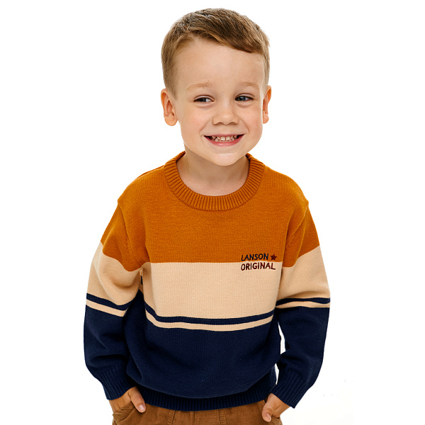 Красивый и оригинальный джемпер идеально подойдет мальчику для прогулок в межсезонье. Это удобная и практичная одежда, в которой очень тепло и комфортно. Она не стесняет движений и позволяет коже свободно дышать. Изделие имеет длинные рукава с трикотажными манжетами, а также отделанный трикотажной резинкой низ и вырез горловины.