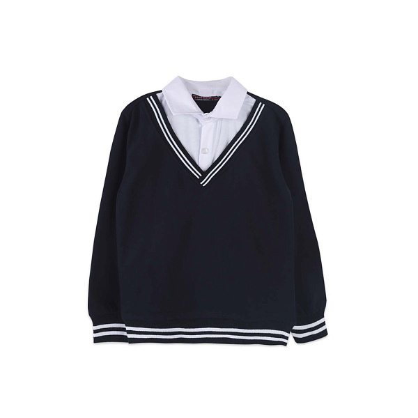 Представьте утренний семейный пикник в парке. Прохладное начало дня с душистым ароматом утренней росы. Позже солнышко постепенно начинает прогревать воздух. Маленький исследователь в синем джемпере спешит поиграть с друзьями и, благодаря 100% хлопку, ему не жарко и комфортно. Белые детали на манжетах, поясе и горловине добавляют стиля в образ.