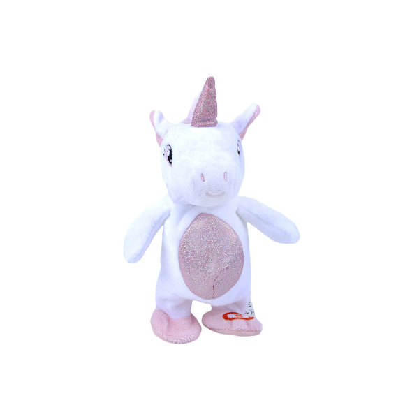 Для деток младшего возраста чудесным развлечением станет мягкий белый единорог, который является ярким представителем интерактивных игрушек. Игрушка имеет нежный белый окрас, сочетающийся с фиолетовыми вставками на животе. Внутри изделия есть встроенный механизм, который осуществляет запись услышанных звуков и их воспроизведение с точной имитацией голоса.