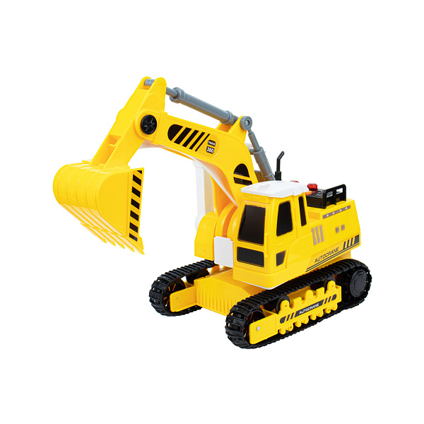 Гусеничный экскаватор имеет подвижную стрелу с ковшом и может поворачиваться в разные стороны, что порадует каждого юного автолюбителя. Такая игрушка нуждается в батарейках, ведь она оснащена механизмом инерционного типа. Ребенок по достоинству оценит реалистичный дизайн и световые эффекты. Сделать такой подарок можно мальчику старше 3 лет. Он вызовет радость и станет поводом для сложных сюжетных игр. Все элементы изготовлены из сертифицированной пластмассы, в составе которой нет токсичных веществ. Материал выдерживает существенные нагрузки, легко отмывается, не выгорает на солнце. Копия имитирует оригинал в масштабе 1:14.