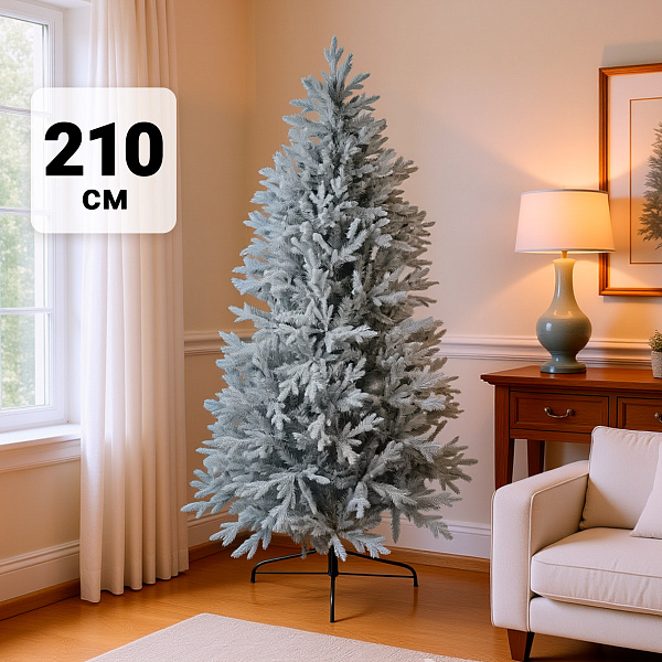 Пышная и пушистая хвоя выполнена с высокой детализацией, благодаря чему создаётся эффект натурального дерева с лёгким инеем. Конструкция лёгкая и удобная в сборке, а прочная металлическая подставка устойчивость ёлки в любом помещении.