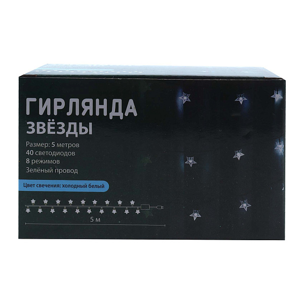 Электрогирлянда LED «Звезды» представляет собой декоративное украшение для интерьера с эффектом мерцания звезд. Модель выполнена с прозрачным проводом и оснащена 40 светодиодами, которые мерцают холодным белым светом, создавая яркую и насыщенную цветовую динамику. Размер гирлянды составляет 5 метров в длину, что позволяет использовать ее для украшения окон, витрин и других элементов интерьера.