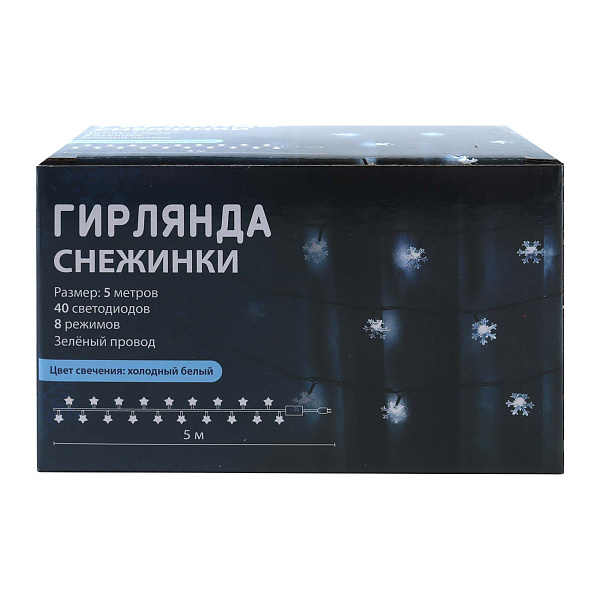 Электрогирлянда LED «Снежини» представляет собой декоративное украшение для интерьера. Модель выполнена с прозрачным проводом и оснащена 40 светодиодами, которые мерцают холодным белым светом, создавая яркую и насыщенную цветовую динамику. Размер гирлянды составляет 5 метров в ширину, что позволяет использовать ее для украшения окон, витрин и других элементов интерьера.