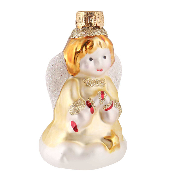 Елочная игрушка «Ангелок» станет изящным украшением для праздничной елки. Изделие выполнено из стекла, что придает ему утонченный вид и долговечность.