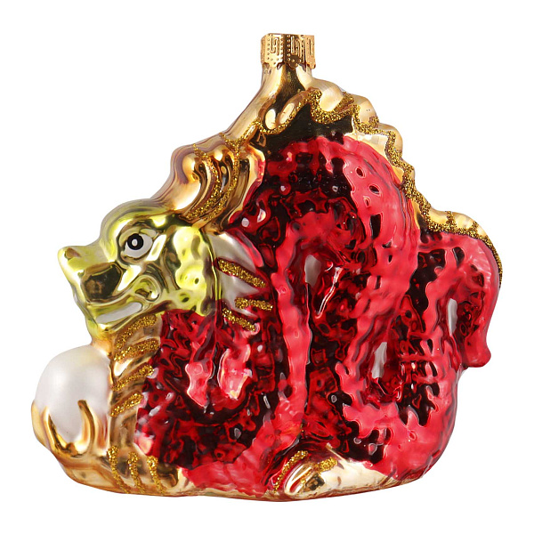 Елочная игрушка «Дракон» выполнена из стекла. Высота фигурки составляет 9 см, что делает ее компактной и при этом выразительной. Стекло придает изделию изысканное сияние и прочность, что гарантирует долгий срок службы украшения.