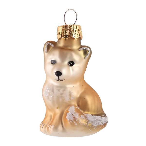 Елочная игрушка Лисичка стеклянная в нежно-золотистом цвете 11см