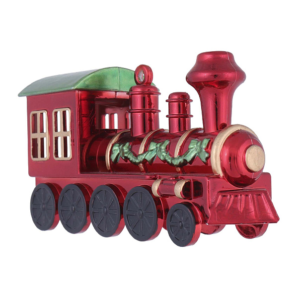 Елочная игрушка Паровозик с золотистыми элементами красный
