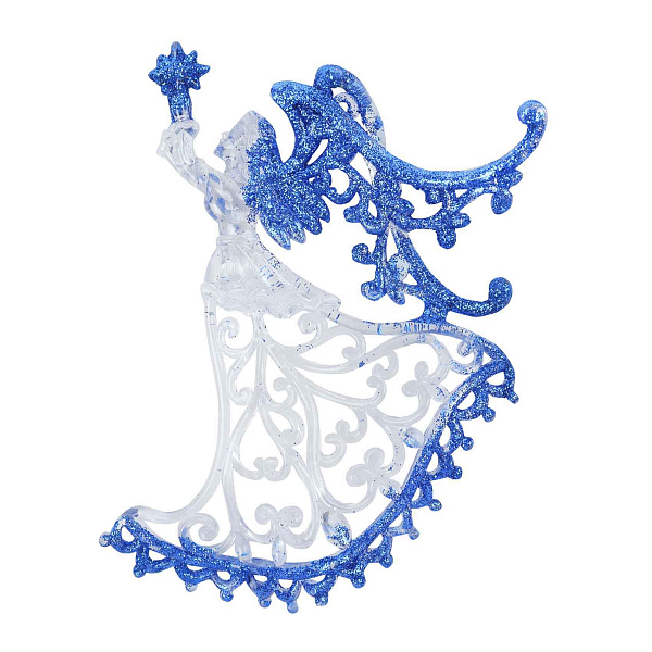 Елочное украшение Ангел прозрачное с синим глиттером 12,5см