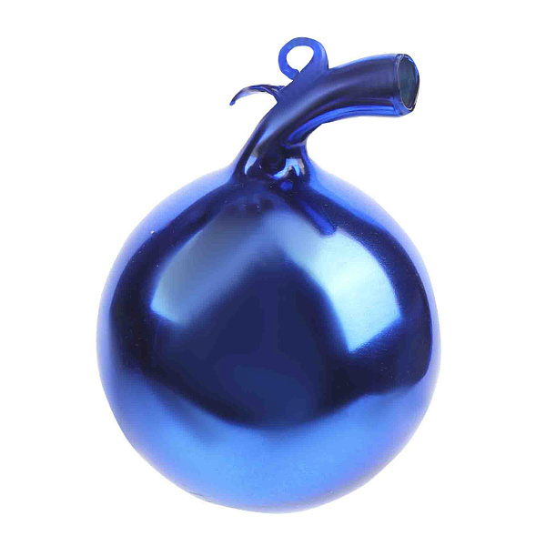 Елочное украшение «Апельсин» выполнено из стекла в насыщенном синем цвете. Фигурка представляет собой округлый шар с небольшой петелькой для крепления на золотистой нити. Украшение входит в коллекцию «Лофт» и отлично впишется в современный интерьер новогодней елки.