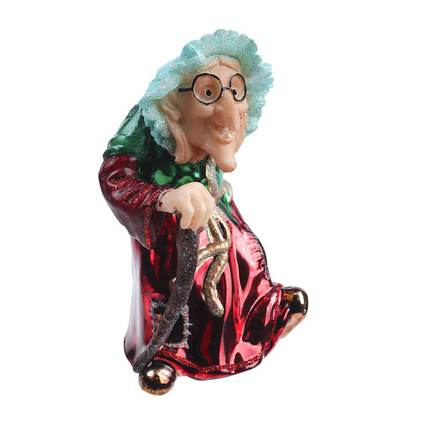 Объемная фигурка высотой 12 см тщательно проработана в деталях — милые очки, опора на трость — создают образ теплой и доброй сказочной бабушки. Это украшение прекрасно дополнит оформление елки, сделает интерьер уютным и волшебным, а также станет замечательным подарком для близких и друзей.