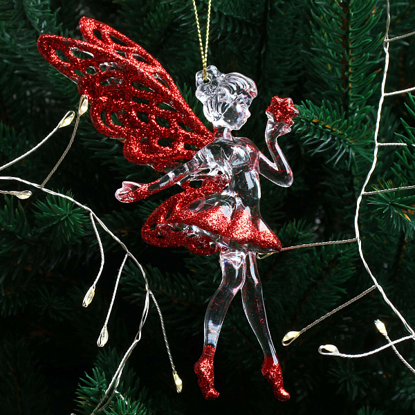 Елочное украшение Фея прозрачная с красным глиттером 12,5см