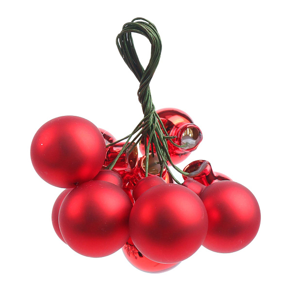 Елочное украшение Гроздь шаров стеклянное красное 10шт 1см