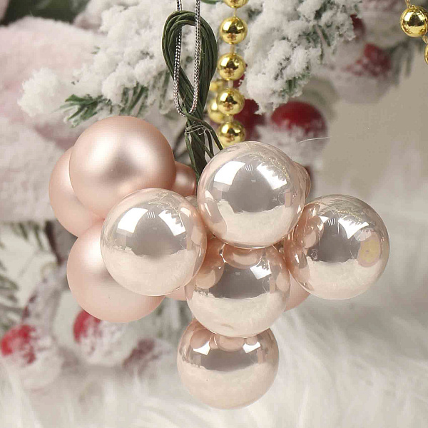 Елочное украшение «Гроздь шаров» из коллекции «Лофт» выполнено из стекла. В комплект входит связка розовых шариков диаметром 1 см. Шарики имеют глянцевую и матовую поверхность, создавая интересный визуальный эффект.