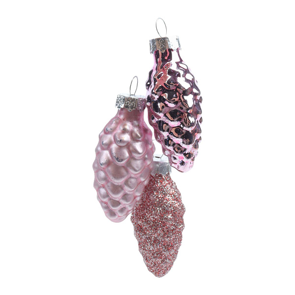 Елочное украшение Гроздь шишек стеклянное розовое 3шт 5см