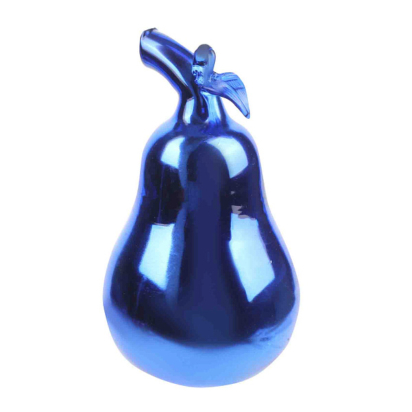 Елочное украшение Груша стеклянное глянцевое синее 12см
