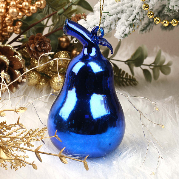 Елочное украшение в форме груши выполнено из стекла насыщенного синего цвета. Высота фигуры составляет 12 см. Элемент дизайна представлен в рамках коллекции «Лофт», что придает изделию современный и лаконичный вид. Фигурка имеет гладкую поверхность с блестящим покрытием, способное отражать свет и создавать праздничную атмосферу.