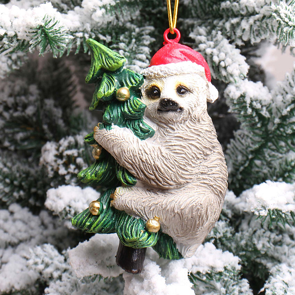Новогодняя игрушка в виде реалистичного серого ленивца, уютно обнимающего украшенную елку и одетого в красную праздничную шапку, станет необычным и привлекательным элементом елочного декора. Выразительная детализация шерсти и теплые, природные оттенки придают фигурке живость и естественность, а размер высотой 9,5 см делает ее заметным и привлекательным украшением.