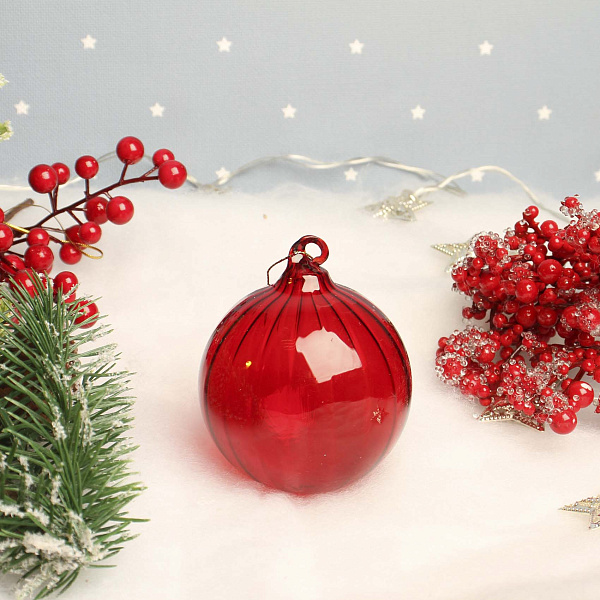 Яркий и элегантный елочный шар из стекла станет великолепным украшением новогодней елки. Шар выполнен в насыщенном красном цвете, который символизирует праздник, тепло и радость. Прозрачная стеклянная поверхность создает интересные эффекты при попадании света, добавляя елке дополнительного блеска и шарма.