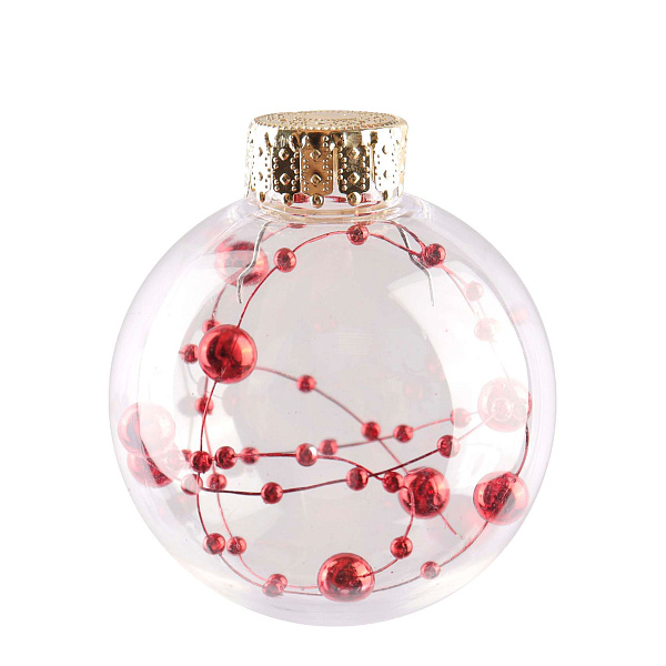 Елочное украшение шар прозрачный с наполнением красного цвета 8см в ассортименте