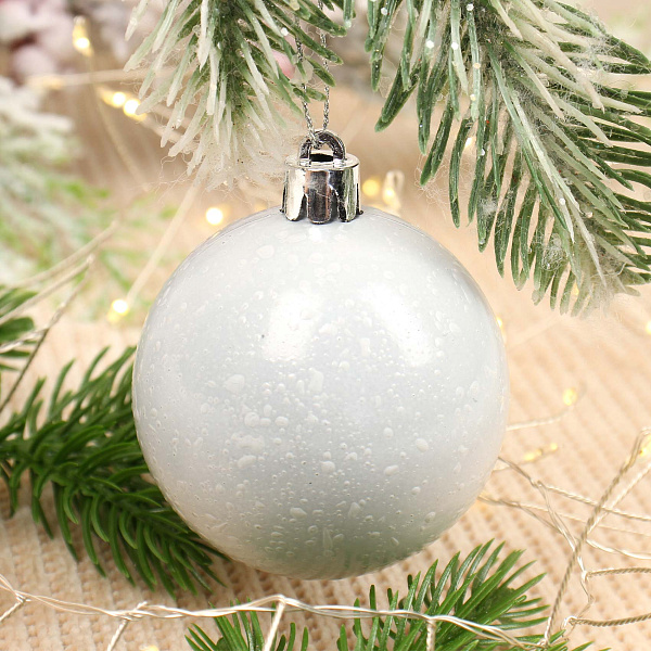 Диаметр шара 6 см делает его удобным для сочетания с другими новогодними игрушками разного размера и стиля. Легкий и прочный материал обеспечивает долговечность, а металлическая верхушка с серебристой подвеской позволяет легко закрепить его на ветках елки, гирляндах или в декорированных композициях.