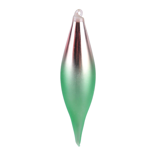 Ёлочное украшение в виде узкой сосульки с градиентным переходом из нежно-розового в мятный цвет — это элегантный декоративный элемент в стиле лофт. Изготовлено из стекла с матовой поверхностью, которая придаёт изделию мягкость и современную утончённость. Удлинённая форма сосульки подчёркивает изящество украшения, делая его универсальным акцентом для праздничного декора.