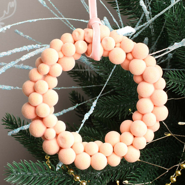 Елочное украшение Венок бархатно-матовый пудровый 12см