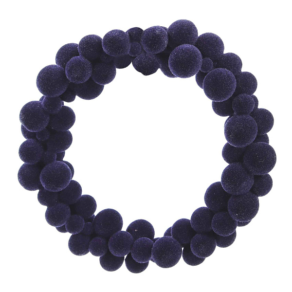 Новогодний венок «Пушистые ягоды» выполнен в синем цвете. Диаметр венка составляет 12 см. Изделие изготовлено из пластика и текстиля, что придает украшению интересную фактуру и внешний вид. Венок крепится на велюровую ленту, которая служит удобным элементом для подвешивания.