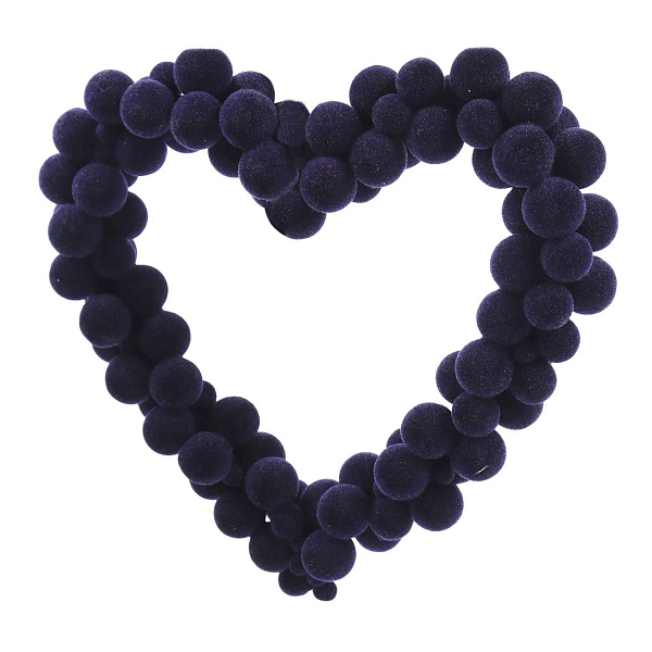 Елочное украшение Венок-сердце бархатно-матовый синий 12см