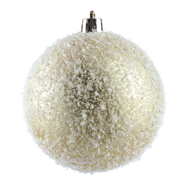 Ёлочное украшение в виде шара с эффектом инея — изысканный декор в винтажном стиле, который придаёт празднику особое тепло и атмосферу зимней сказки. Шар выполнен из пластика с покрытием в золотистом оттенке и текстурой, имитирующей морозные кристаллы инея, создавая ощущение лёгкости и натуральной свежести.