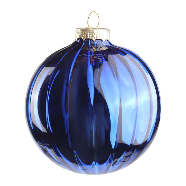 Насыщенный синий цвет придает украшению элегантность и стиль, а гладкая поверхность отражает свет, создавая эффект мерцания. Шар подчеркнет изысканность праздничного интерьера, добавив в него нотки холодной красоты зимы.