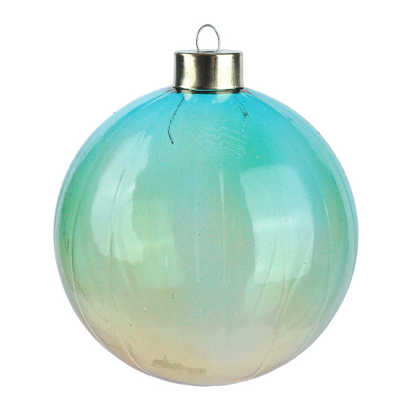 Ёлочное украшение — прозрачный стеклянный шар в стиле лофт с уникальным градиентом мятно-жёлтого цвета. Диаметр шара составляет 10 см, что делает его универсальным элементом для декорирования новогодней ёлки или праздничного интерьера.