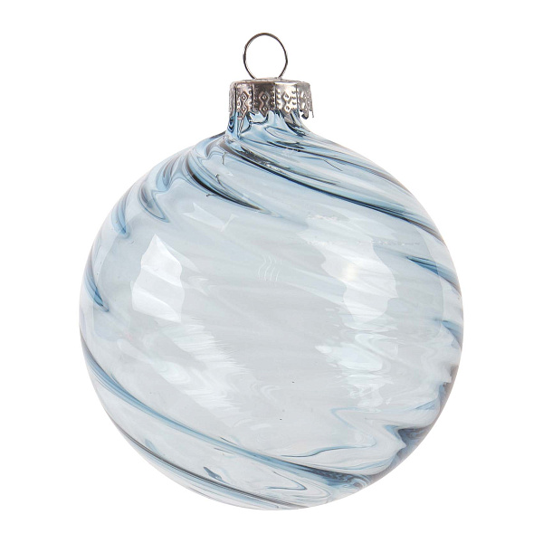 Елочный шар прозрачный рельефный нежно-голубой стекло 8см