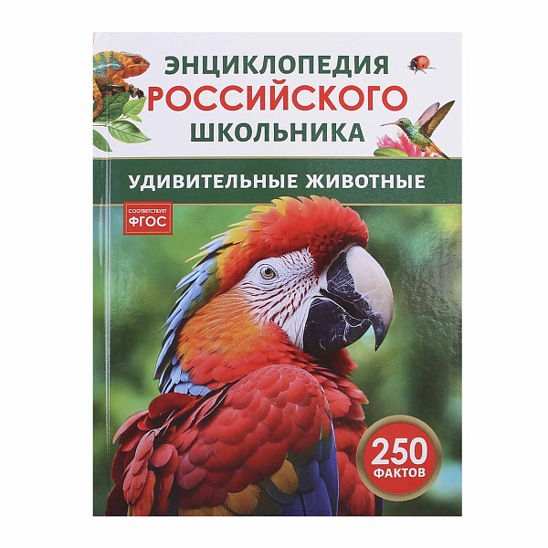 Энциклопедия «Животные» из серии «Энциклопедия российского школьника» представляет собой красочно оформленное издание с яркой обложкой, украшенной изображением разноцветного попугая. Книга создана с учетом стандартов ФГОС и предназначена для расширения кругозора школьников.