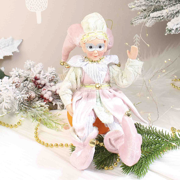 Декоративная фигура эльфа высотой 33 см в винтажном стиле — очаровательное и нежное украшение для праздничного интерьера. Изготовленная из пластика с тканевой одеждой, фигура сочетает в себе мягкость бархатистого текстиля и выразительность деталей лица. Одежда эльфа выполнена в пастельных розовых и светло-зеленых тонах с элементами серебристой вышивки, а колокольчики, прикрепленные к шапочке и одежде, придают изделию волшебный звук и дополнительный шарм.