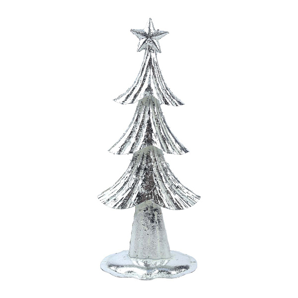 Декоративная елка в серебристом цвете и стиле лофт — стильный элемент праздничного интерьера, выполненный из металла высотой 30 см. Изделие выделяется лаконичным и современным дизайном с выразительной текстурой, придающей металлической поверхности эффект винтажного блеска. Такая елка станет эффектным акцентом на новогоднем столе, полке или в зоне декора, создавая атмосферу уюта и торжества.