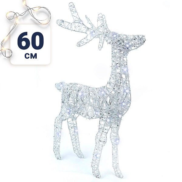 Фигура металлическая Олень с подсветкой серебристый 60 см