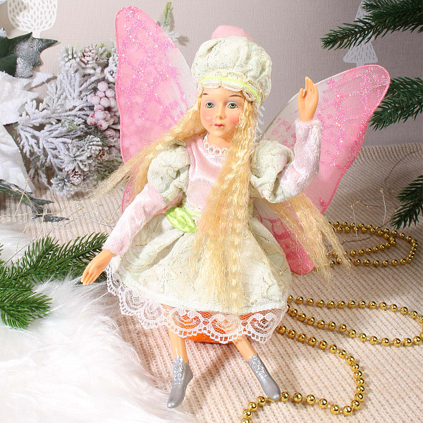 Декоративная фигурка в виде феи в винтажном стиле — изысканное украшение для интерьера и праздничного декора. Изготовленная из пластика, фигурка высотой 30 см выполнена с высокой детализацией, что придает ей особое очарование и нежность. Фея одета в элегантный костюм из бархатистого материала пастельных тонов с ажурными элементами и украшена розовым цветком на поясе. Прозрачные крылья с розовым узором добавляют легкости и сказочности образу. Эта фигурка прекрасно впишется в праздничную композицию, подарит атмосферу волшебства и тепла.