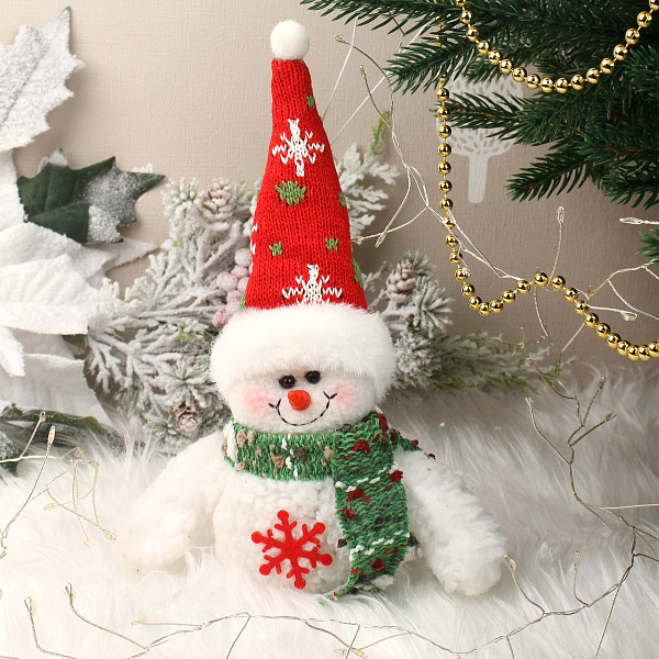 Фигурка декоративная Снеговик в шарфике текстиль 15см в ассортименте