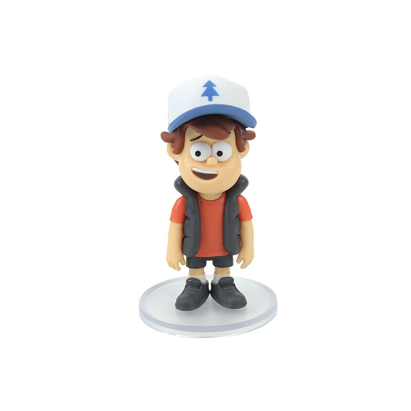 Игрушка Диппер входит в коллекцию игрушек по мотивам мультфильмов киностудии Дисней. Диппер – персонаж мультфильма «ГравитиФоллз», брат героини ленты Мейбл. Это любознательный и умный мальчик, постоянный участник приключений героев фильма. Именно он отыскал документ с секретами города ГравитиФоллз. Игрушка точно копирует внешний облик Диппера. Он одет в свою традиционную оранжевую майку и кепку-бейсболку с принтом елки. Фигурка имеет высокий уровень детализации и высоту 7 см. Она установлена на подставке и изготовлена из ПВХ. Материал не имеет вредных примесей и запаха. Игрушка рекомендуется детям от 3-х лет.