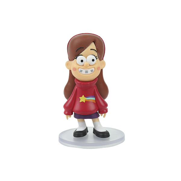 Фигурка детально воспроизводит облик героини сериала. На Мейбл бордовый свитер с желтой звездой, синяя юбка, черные ботинки, на зубах брекеты. Фигурка высотой 7 см установлена на подставке.