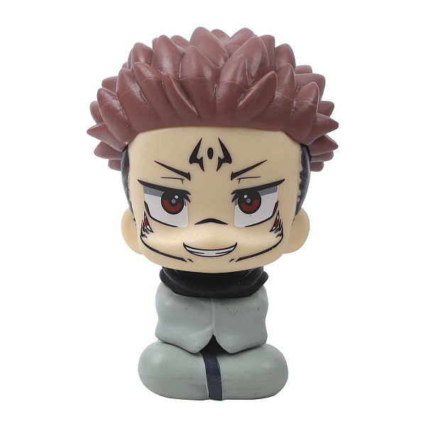 Фигурка персонажа «Jujutsu Kaisen» Ремен Сукуна — это коллекционная статуэтка высотой 10 см, выполненная в стиле чиби. Фигурка изображает героя в сидячем положении, с его характерной улыбкой, красными глазами и тремя шрамами на лбу, что подчеркивает его зловещую и мощную ауру.