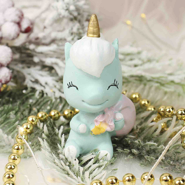 Фигурка единорога из полирезина — компактное и выразительное изделие, подходящее для подарка или декоративного акцента в интерьере. Выполнена в нежных пастельных тонах с белыми и золотистыми деталями, что придает ей нежный и сказочный образ. Размер фигурки составляет 7 см, что позволяет удобно размещать ее на полках, рабочих столах или в небольших композициях.