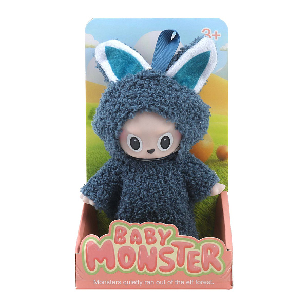 Фигурка упакована в яркую картонную подставку с изображением и названием серии Baby Monster. Игрушка подойдет для игр или в качестве оригинального аксессуара. Небольшой размер и петелька делают ее удобной для использования в качестве брелока.