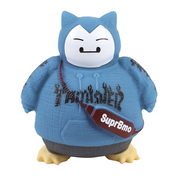 Фигурка «Модный Снорлакс» высотой 7,5 см выделяется своим оригинальным и современным дизайном. Снорлакс одет в стильный голубой худи, что подчёркивает его уникальный характер. На груди худи нанесен интересный принт, а через плечо проходит красочная сумка с надписью, создавая актуальную городскую атмосферу.