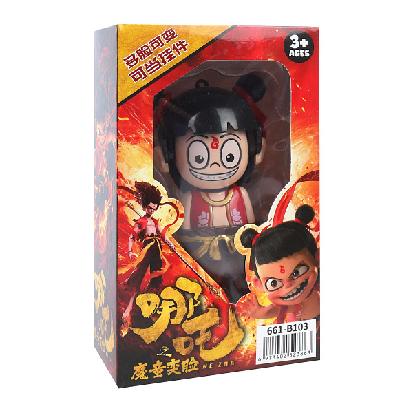 Фигурка Нэчжа имеет необычную конструкцию. Ее высота составляет 12 сантиметров. Такой размер подходит для игры на столе. Главная особенность — меняющееся лицо персонажа. Вращение головы показывает разные выражения. Это создает эффект трансформации.